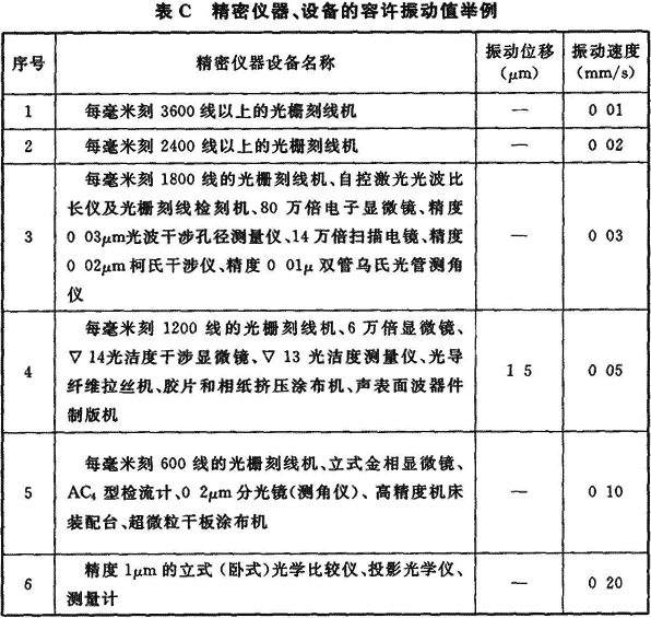 附錄C 精密儀器、設備的容許振動值舉例